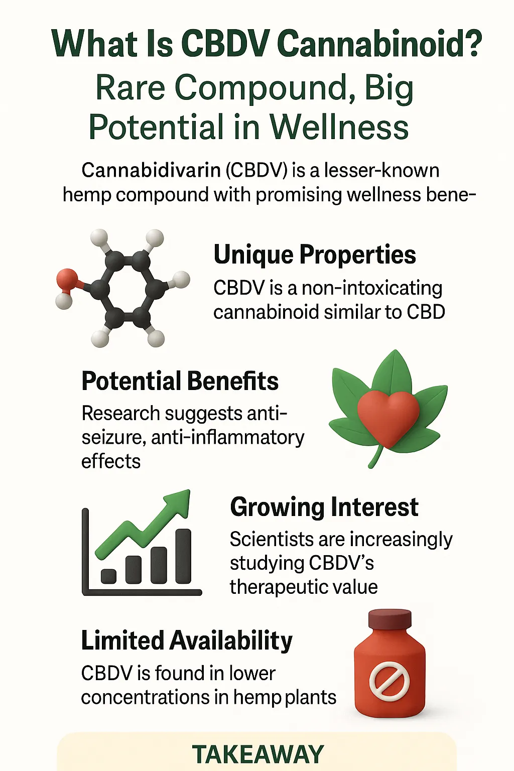 - CBDV is rare and unique — different structure and effects than CBD.